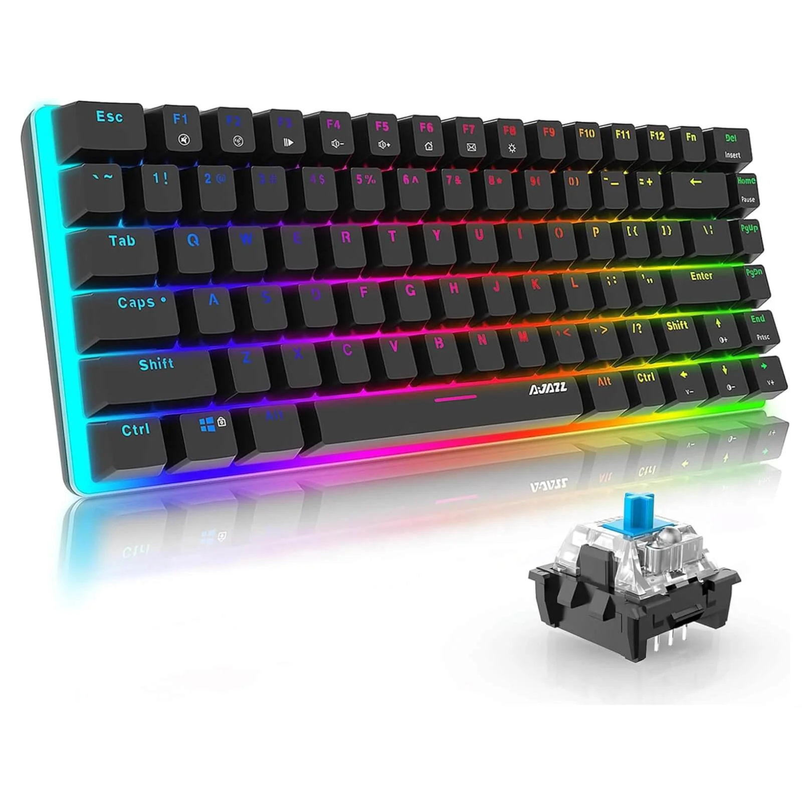 Ajazz AK33 — це компактна механічна клавіатура формату 82 клавіші, яка поєднує стиль та функціональність. Оснащена RGB-підсвіткою, що додає сучасного вигляду.